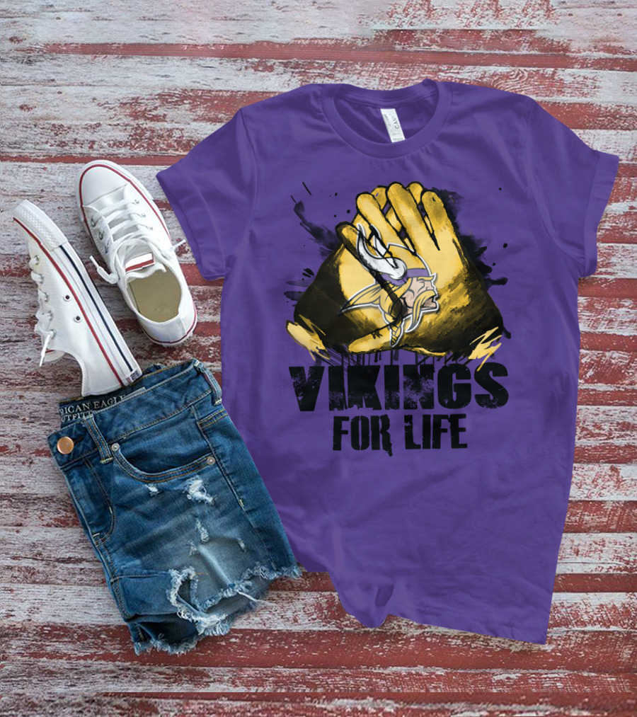 The Vikings For Life Minnesota Vikings Shirt offers a regular fit. Made from 100% ring-spun cotton that is pre-shrunk to help maintain size and shape after washing. Features reinforced construction details for durability. Available in U.S. standard sizes S-5XL to accommodate various body types.