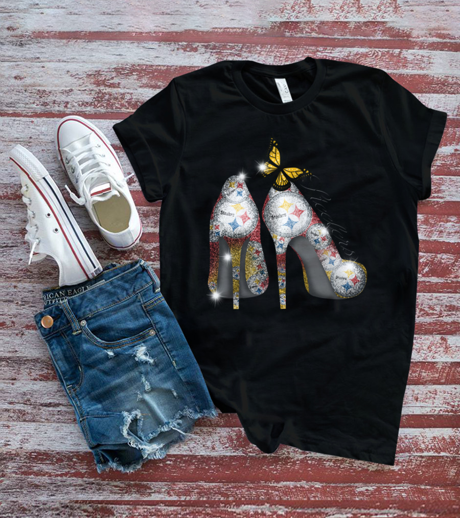 Steelers Pittsburgh High Heels With Yellow Butterfly Sparkle T-Shirt