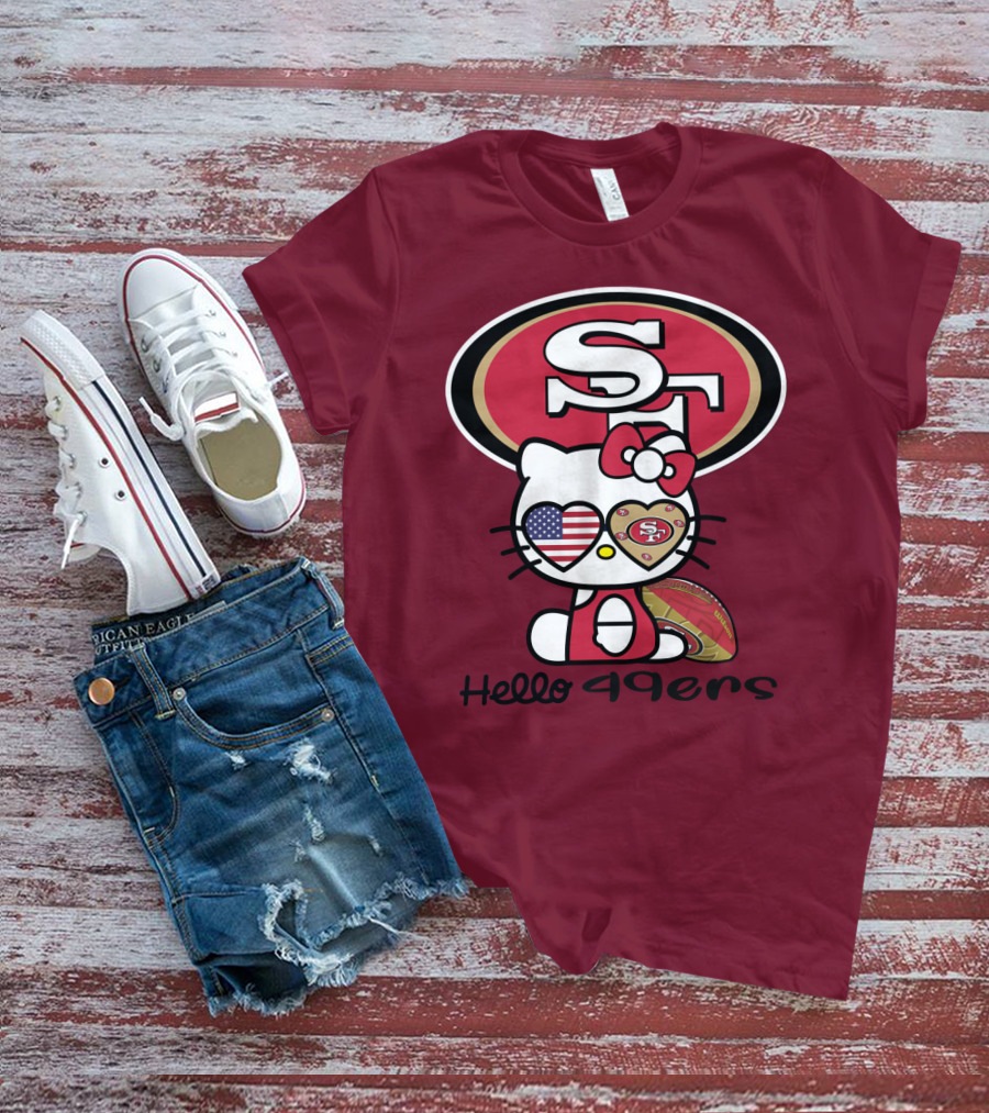 The Hello 49ers San Francisco 49ers Football Fan Heart Kitty Shirt offers a regular fit. Made from 100% ring-spun cotton that is pre-shrunk to help maintain size and shape after washing. Features reinforced construction details for durability. Available in U.S. standard sizes S-5XL to accommodate various body types.