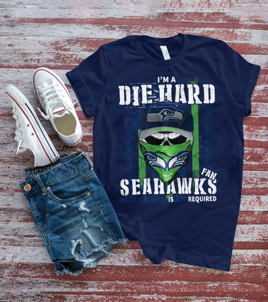 The I'm A Die-Hard Seahawks Fan Your Approval Is Not Required Shirt offers a regular fit. Made from 100% ring-spun cotton that is pre-shrunk to help maintain size and shape after washing. Features reinforced construction details for durability. Available in U.S. standard sizes S-5XL to accommodate various body types.