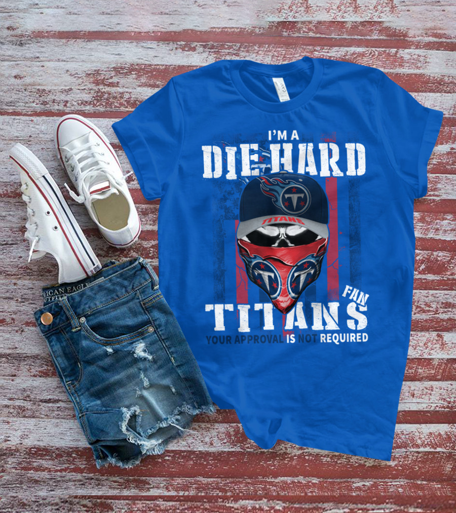 The I'm A Die-Hard Tennessee Titans Fan Your Approval Is Not Required Shirt offers a regular fit. Made from 100% ring-spun cotton that is pre-shrunk to help maintain size and shape after washing. Features reinforced construction details for durability. Available in U.S. standard sizes S-5XL to accommodate various body types.