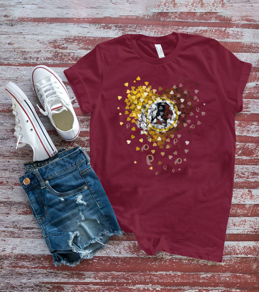 Washington Redskins Heart-Shaped Design With Logo And Colorful Hearts T-Shirt