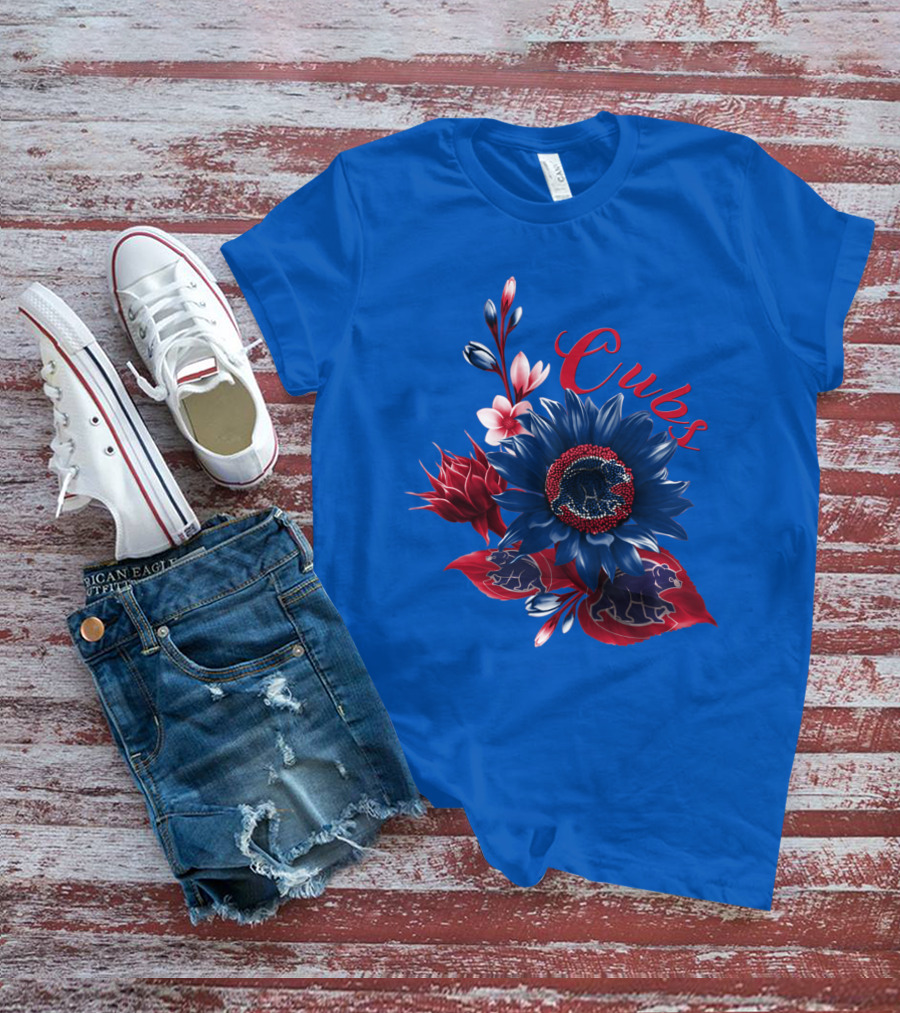 Cubs Blue And Red Floral T-Shirt