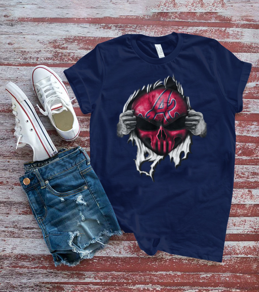 Atlanta Braves Skull Logo Ripped T-Shirt