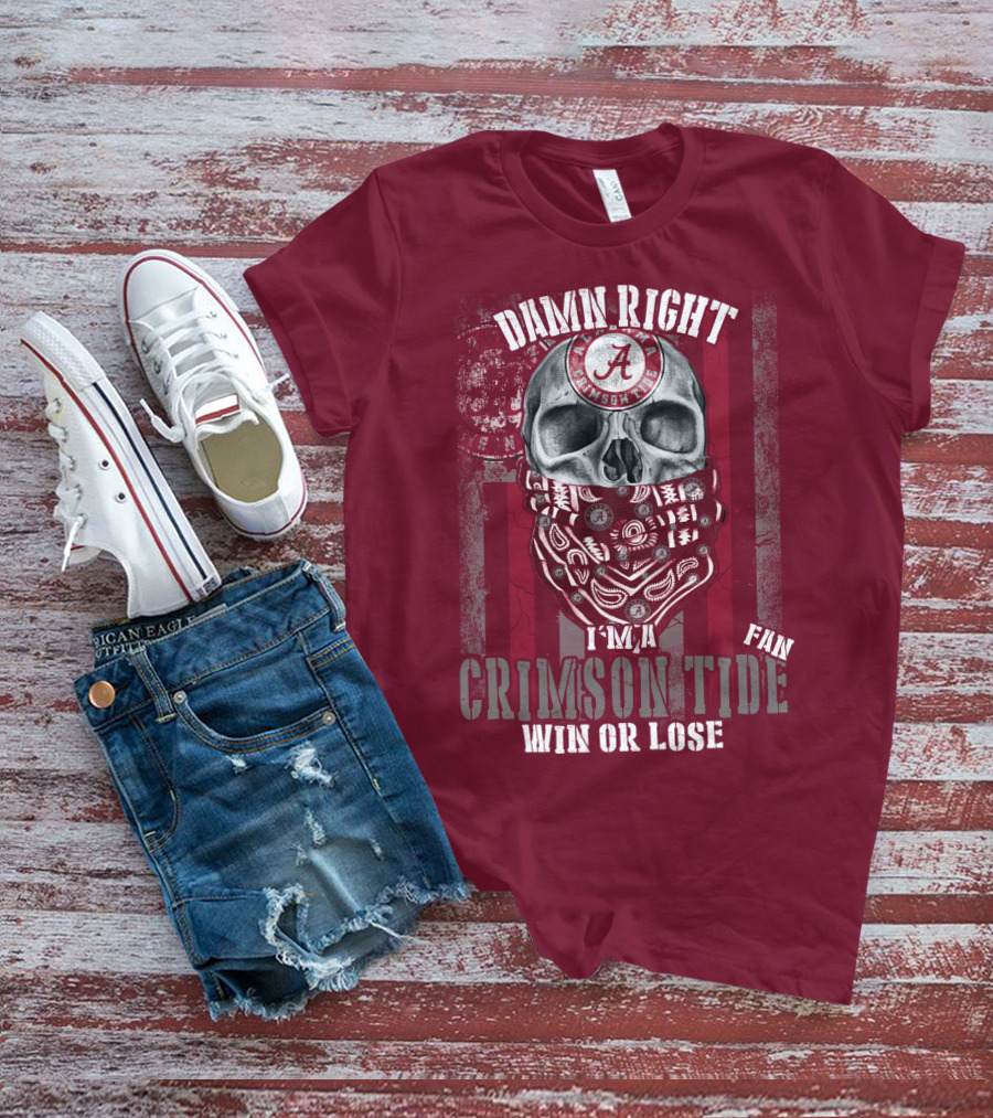 Damn Right I'm A Crimson Tide Fan Win Or Lose T-Shirt