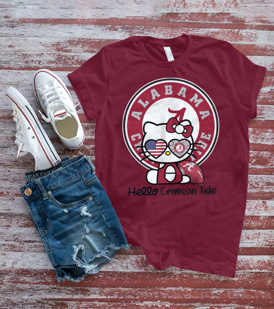 Alabama Crimson Tide Hello Crimson Tide American Flag Football T-Shirt
