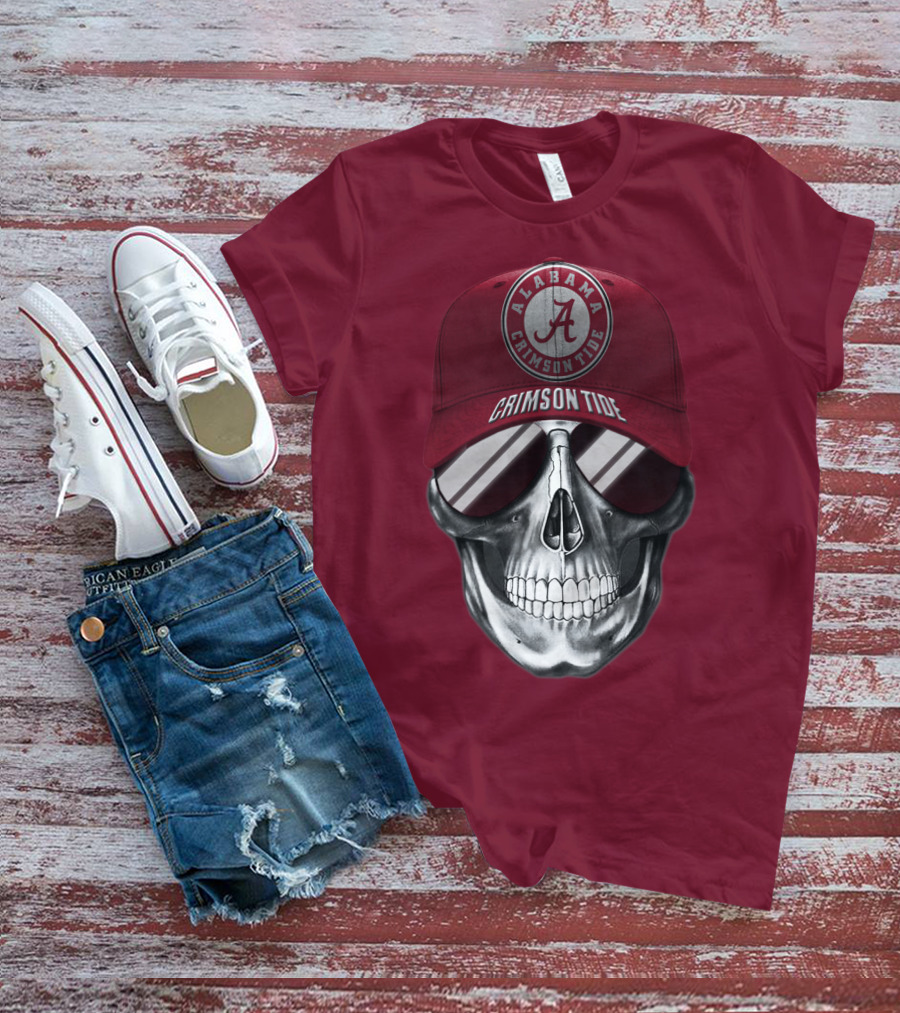 Alabama Crimson Tide Skull With Cap And Sunglasses T-Shirt