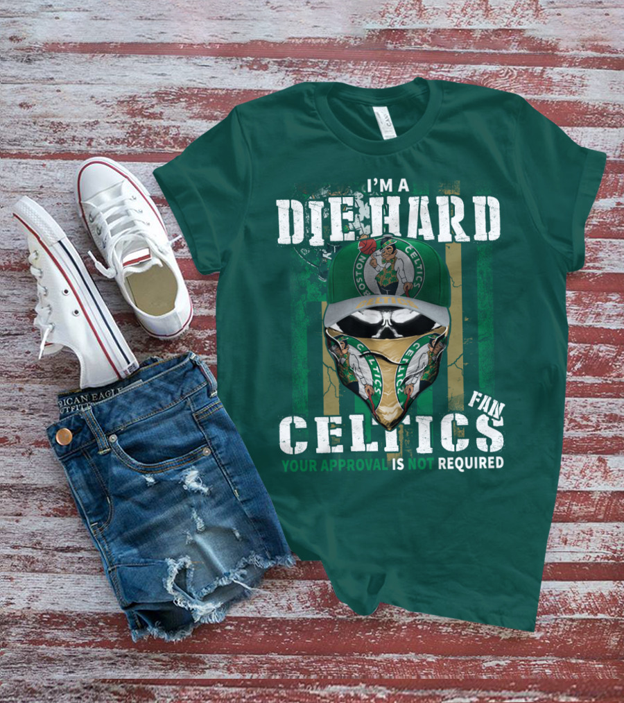The I'm A Die Hard Boston Celtics Fan Your Approval Is Not Required Shirt offers a regular fit. Made from 100% ring-spun cotton that is pre-shrunk to help maintain size and shape after washing. Features reinforced construction details for durability. Available in U.S. standard sizes S-5XL to accommodate various body types.