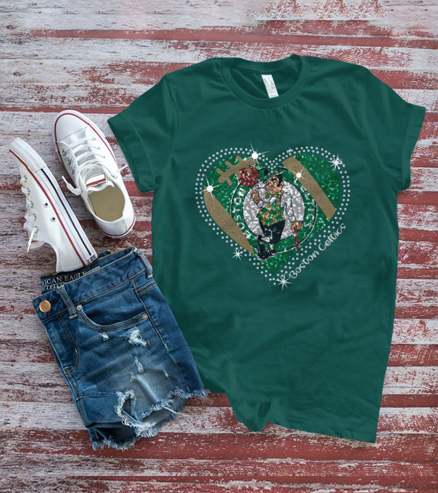 Boston Celtics Heart Logo With Sparkling Green And Gold Accents T-Shirt