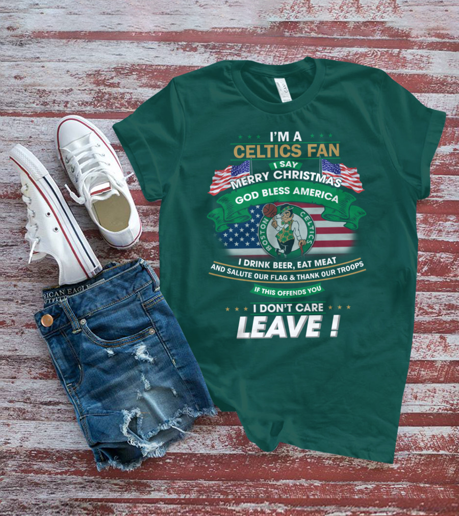I'm A Celtics Fan I Say Merry Christmas God Bless America Boston Celtics Leave T-Shirt